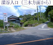 500メートル先の深谷入り口(深谷荘の看板有り)右折して1.3`先